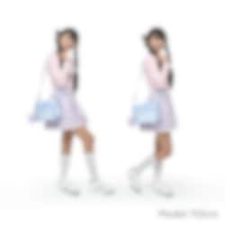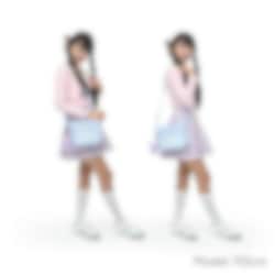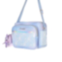 Blå rutig axelväska med karamell-börs