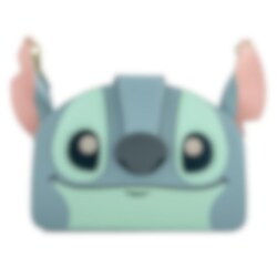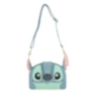 Svårslaget gullig Stitch-väska med ett axelband som hänger i öronen. Väskan stängs med dragkedja och har en rem över dragkedjan som föreställer Stitch näsa.