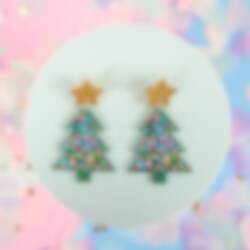 Örhängen - Grön glittrig gran med en massa julkulor