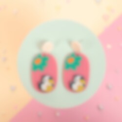 Stiftörhängen - Cerise med katt & blomma