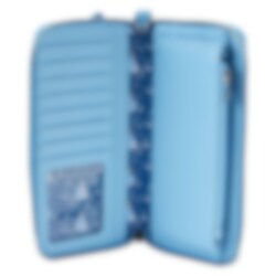Loungefly Disney Cinderella Princess Lenticular Zip-Around Wallet Wristlet är tillverkad av veganskt läder (polyuretan). Plånboken stängs med dragkedja med blankt guldfärgade metallbeslag. Ytterligare funktioner inkluderar applikationer, präglingar, lenticular-effekt och tryckta detaljer. Observera det matchande innerfodret.