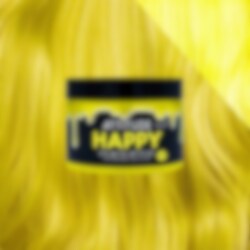 Happy Neon Yellow är en klar semipermanent hårfärg som håller i upp till 6 veckor och bleknar till en mjuk pastellgul ton. Den veganska och cruelty free formulan är tillverkad i Nederländerna och vårdar håret samtidigt som den ger intensiv färg utan att skada. Färgen är enkel att använda och syns starkast i ljusare eller förblekt hår. Våga lysa upp looken, testa något nytt och ha kul med ditt hår.